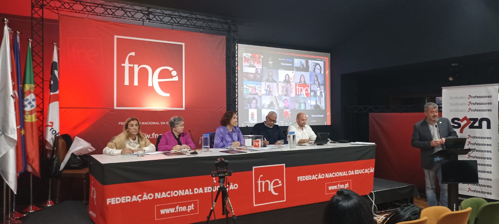 O Conselho Geral da FNE reuniu na tarde deste sábado, 29 de novembro, em modo híbrido (presencial no Auditório do SPZN no Porto e via ZOOM), numa reunião em que tal como no Secretariado Nacional, foram discutidos e posteriormente aprovados o Plano de Atividades / Orçamento da FNE para 2026.